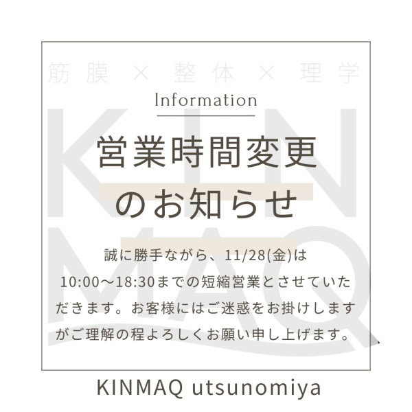 白 シンプル 台風 お休み 臨時休業のお知らせ日頃よりKINMAQ整体院をご利用いただき、誠にありがとうございます。